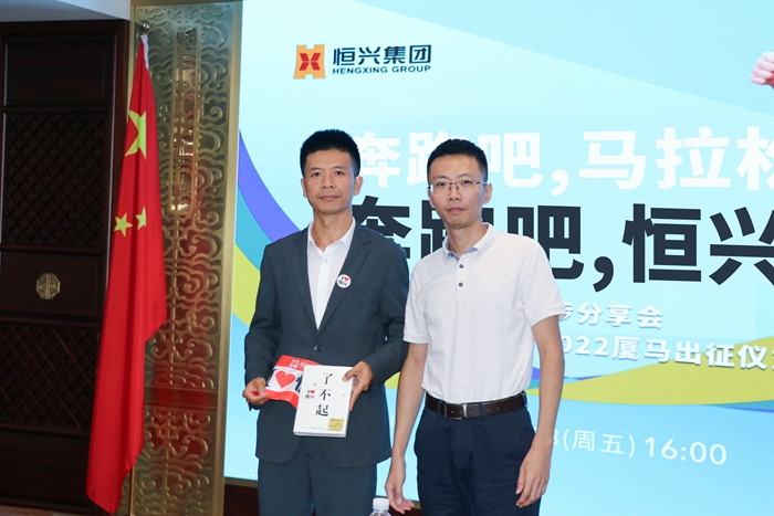 當(dāng)天,集團(tuán)公司總裁辦主任吳勇慧在發(fā)言中祝賀葉仁平再次中簽,期待他將恒興人追逐不凡的身姿,再次帶進(jìn)廈馬賽場(chǎng),并預(yù)祝他突破個(gè)人歷史成績(jī)記錄?,F(xiàn)場(chǎng),吳主任為參賽職工發(fā)放了賽事報(bào)名費(fèi)補(bǔ)貼,并贈(zèng)送勵(lì)志書(shū)籍、馮唐的新書(shū)《了不起》。?
