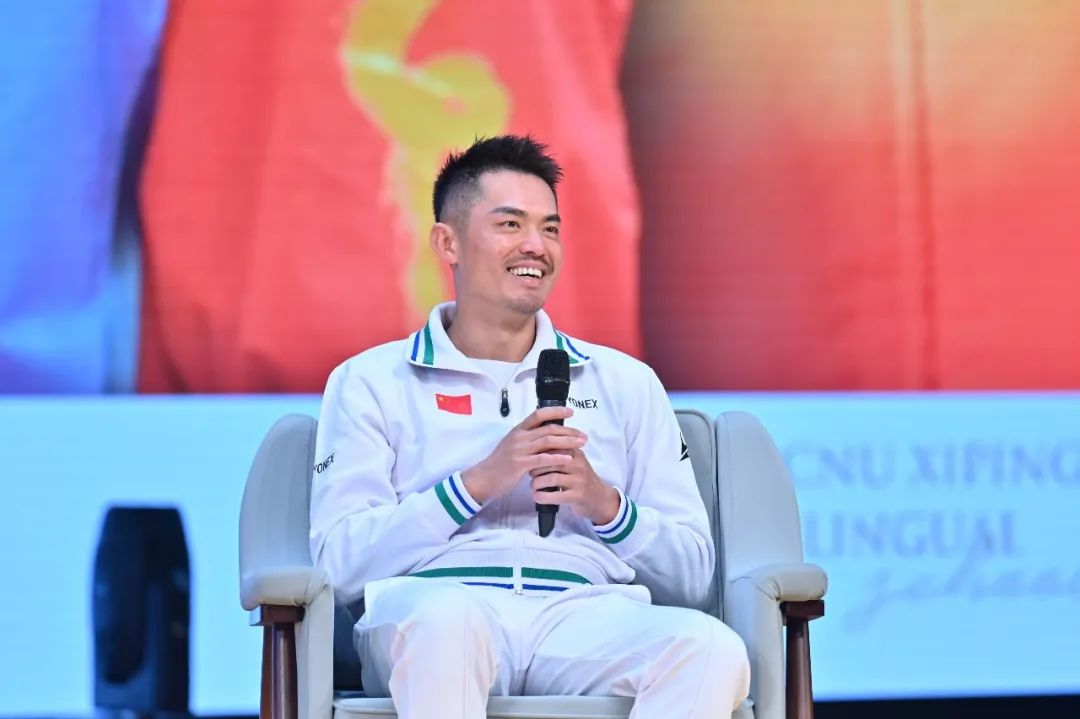 本次活動現(xiàn)場,林丹先生應邀接受訪談,與華希學子們圍繞“丹式”體育精神展開了對話。從籍籍無名的羽毛球小將,到羽毛球歷史上第一位雙圈全滿貫選手,林丹向在座的同學們分享了自己一路成長的歷程。