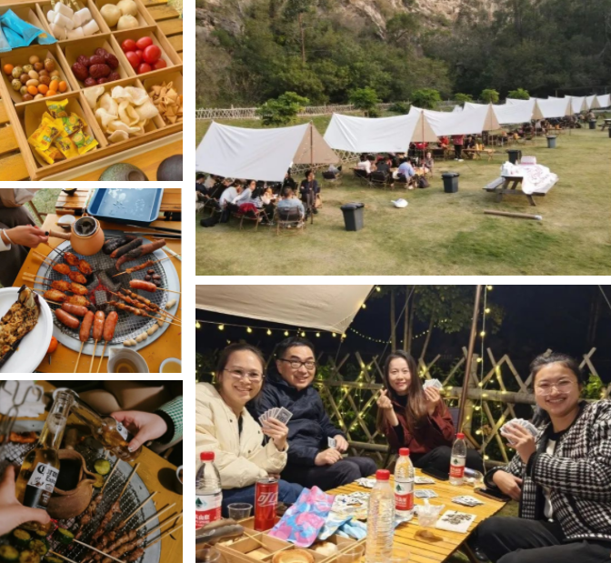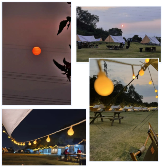 相聚的時(shí)刻,從來不缺少美食,17:30,燒烤晚餐開啟。令人驚喜的是,整片營地向西,一眼望去,夕陽正西下,我們一起遇見了這個(gè)春天震撼的落日景色。星星點(diǎn)點(diǎn),斑駁光影照在天幕下,美食美酒伴圍繞,聽著小伙伴們述說各自精彩有趣的經(jīng)歷過往。雖然時(shí)不時(shí),還要接個(gè)工作電話,但是當(dāng)下,我們?cè)谝黄?,就是最值得開心的。