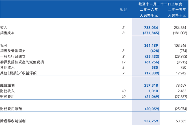 2016年年報顯示,公司營業(yè)收入達(dá)到7.33億元人民幣(如無說明, 單位下同),同比增長157.6%,但銷售成本增速只有105.52%,因此公司的毛利的增速更是達(dá)到248.79%。除此之外,公司的行政開支也有一定程度的下滑。