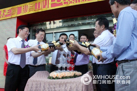 領導致辭后,廈門市領導徐模、陳昭揚、葉重耕、翁云雷、許明耀、廈門大學黨委書記朱之文;原廈門市政協(xié)副主席陳維欽、思明區(qū)人民政府區(qū)長黃僑生與恒興集團董事長柯希平等10名嘉賓共同為財富中心的落成剪彩。一聲汽笛鳴響,大堂LED屏幕中巨輪緩緩啟航,現(xiàn)場掌聲雷動,場面熱烈,象征著財富中心正式落成啟用 ——“財富匯聚、海西啟航”!緊接著,臺上各位嘉賓齊開香檳酒澆灌香檳塔,舉杯慶祝恒興集團喬遷之喜!