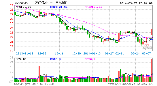 廈門鎢業(yè)(26.04,?-0.52,?-1.96%)(600549)20日晚公布非公開發(fā)行股票預(yù)案,擬募資30億元補(bǔ)充流動資金,除公司控股股東、上市公司南京高科(10.70,?0.17,?1.61%)、投資機(jī)構(gòu)認(rèn)購?fù)猓瑥B門鎢業(yè)增發(fā)獲得廈門兩大富豪捧場,其中包括資本市場的“強(qiáng)大散戶”柯希平。公司股票于2014年3月21日復(fù)牌。